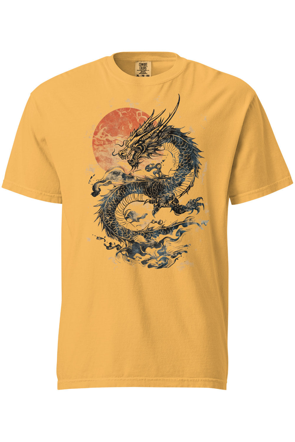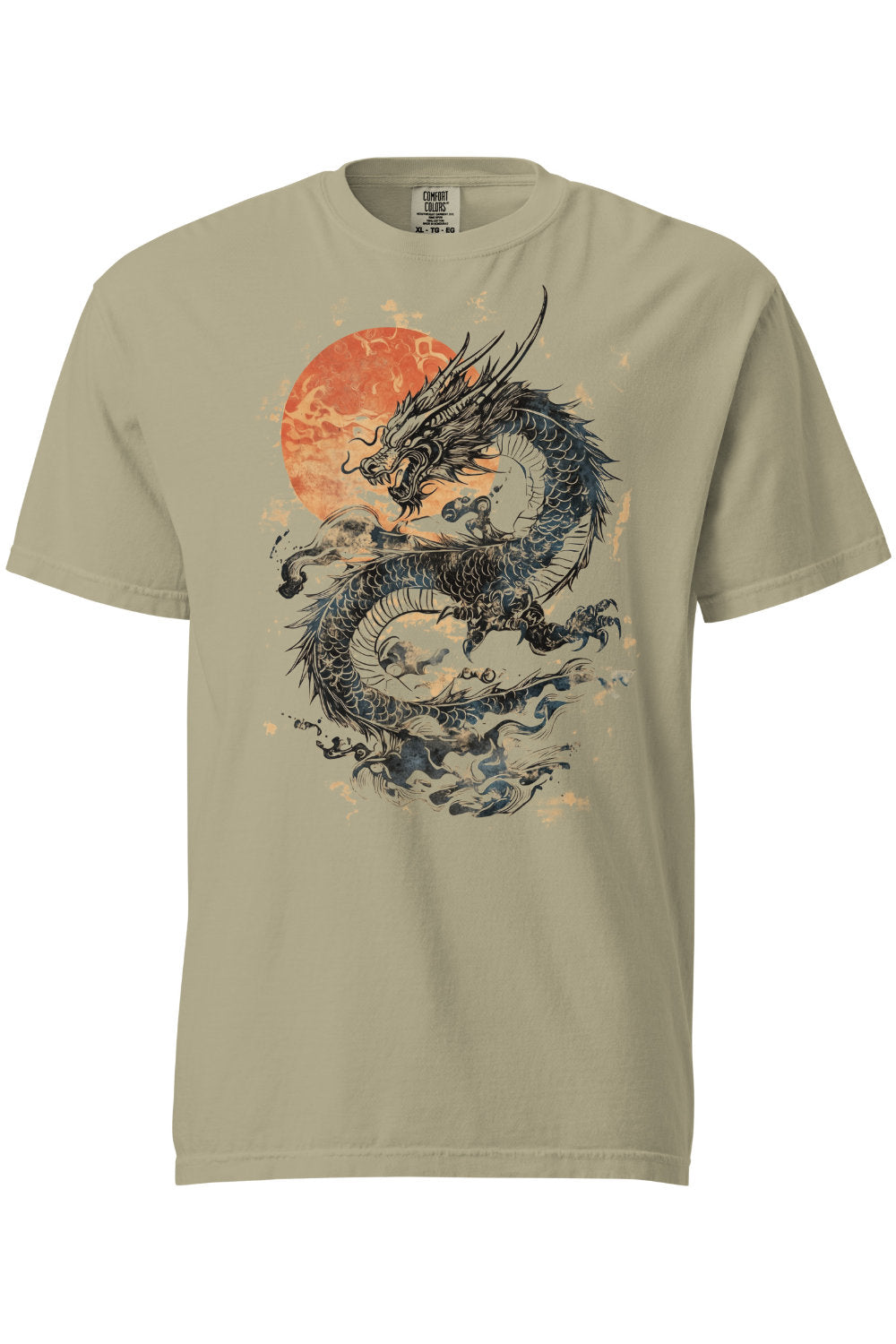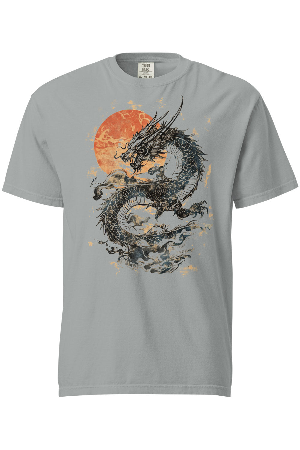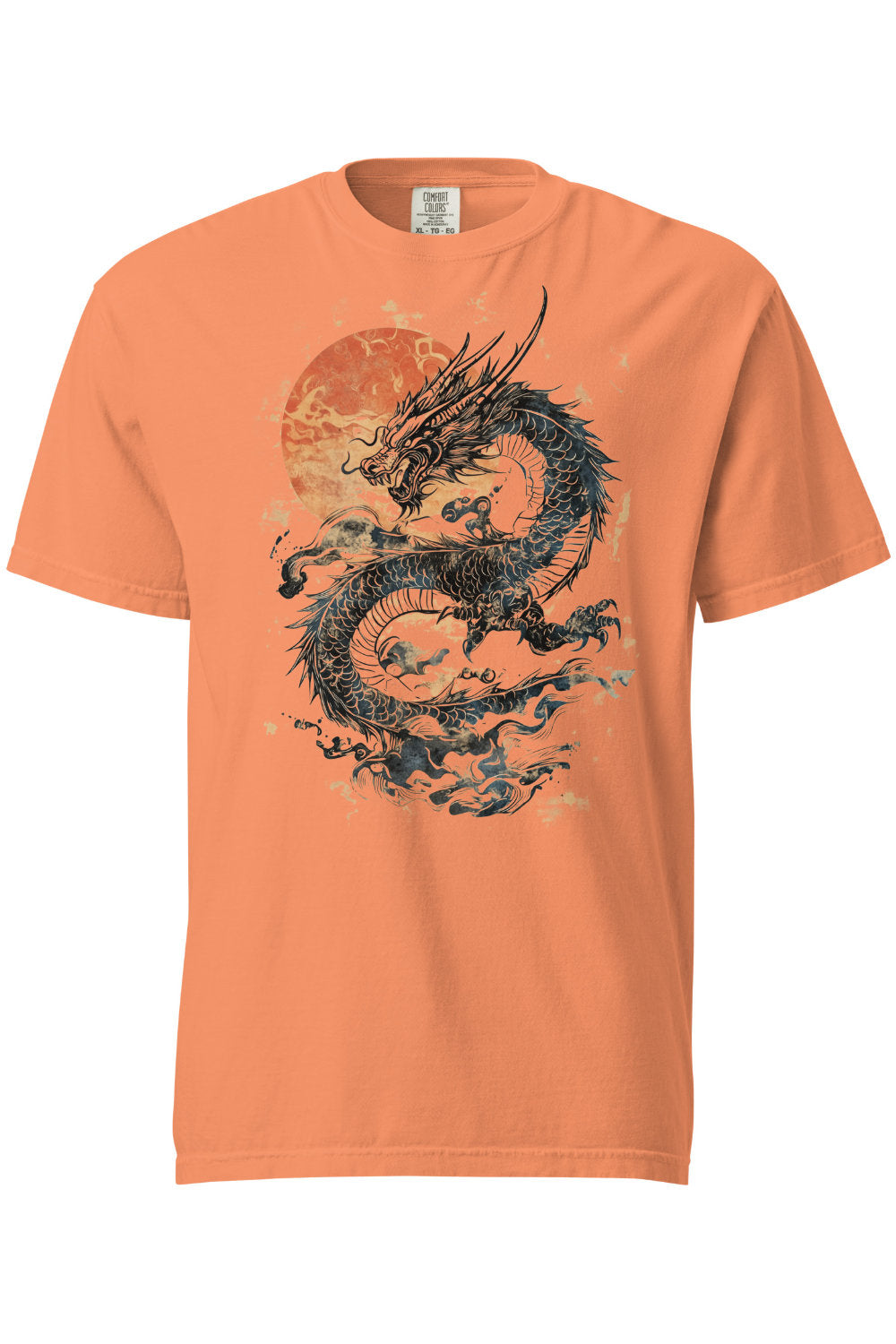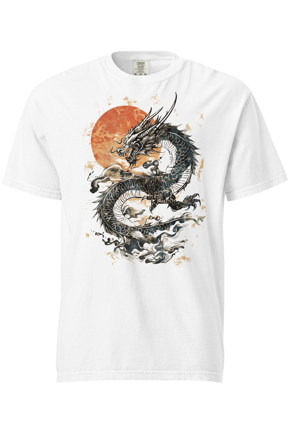 The Black Dragon tee has that effortless cool factor. A bold, detailed dragon design set against a fiery backdrop, printed on a range of colors from earthy terracotta to clean ivory. The artwork commands attention no matter the shade, and the soft fabric and solid fit make it an easy favorite. Pair it with jeans, layer it under a jacket, or wear it however you want—it just works.