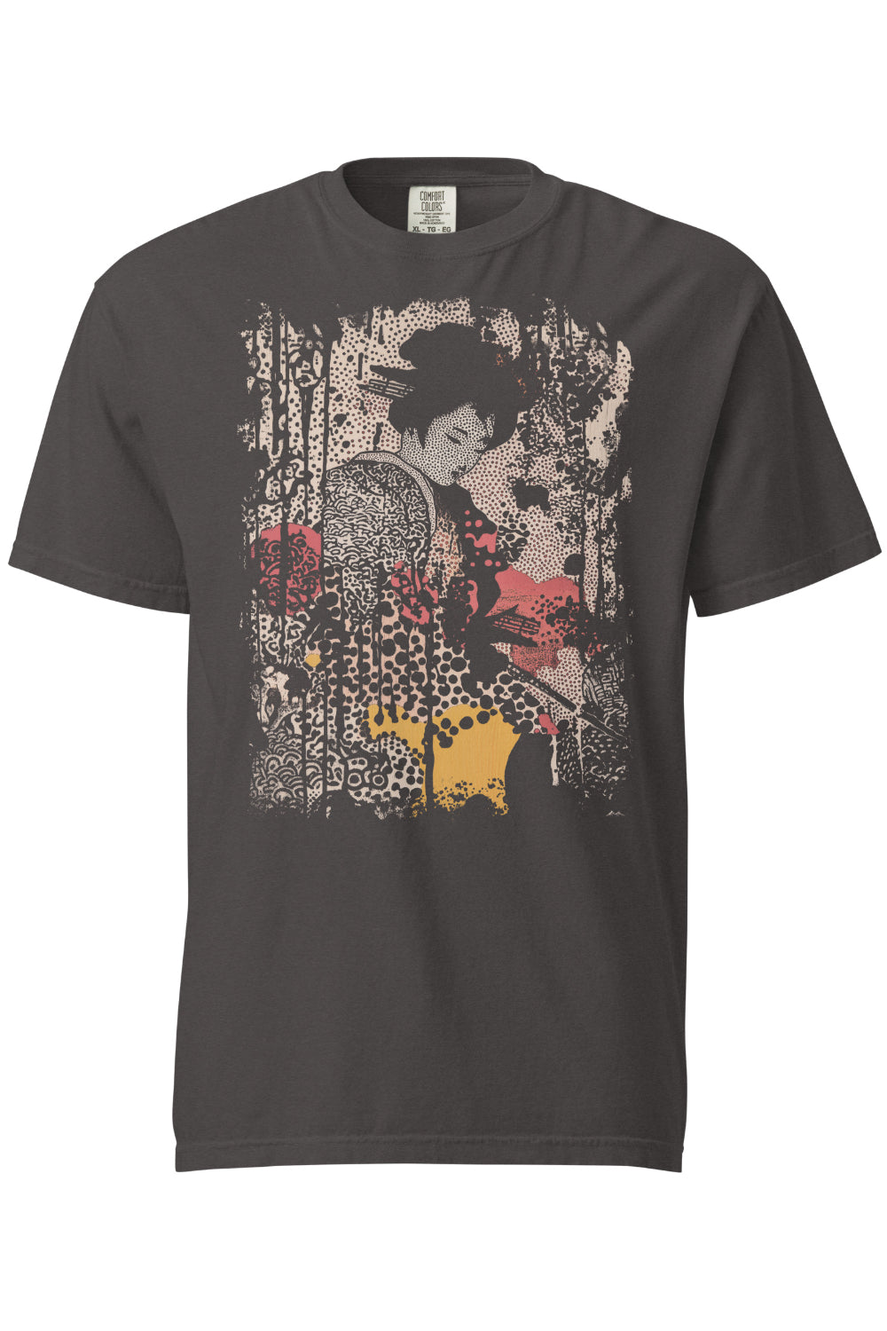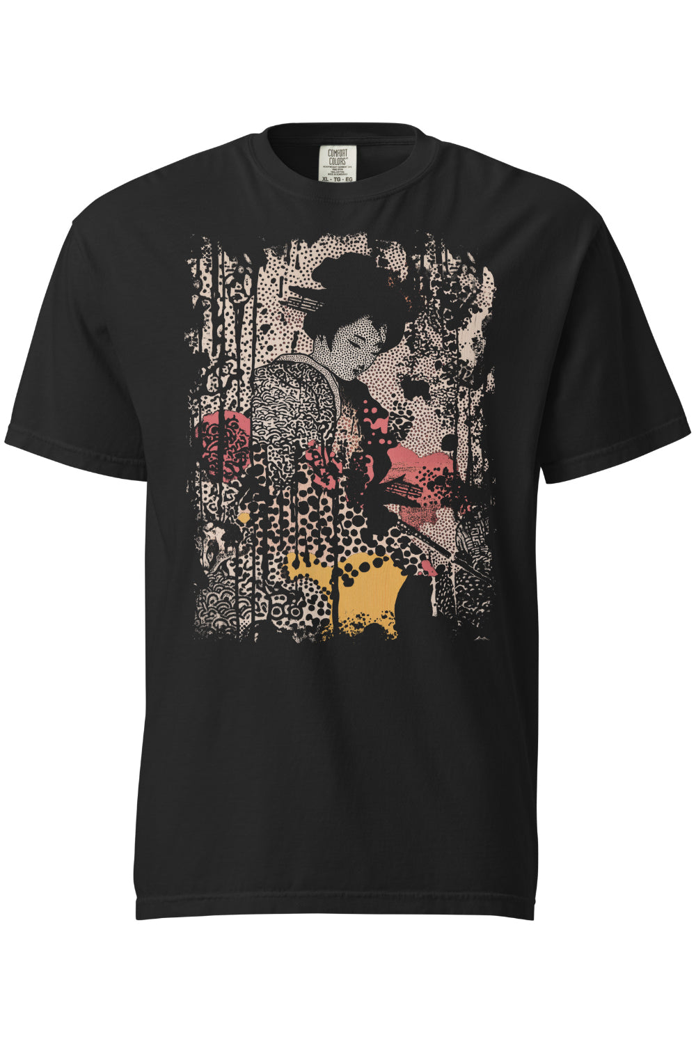Grace and tradition meet in this understated t-shirt design, featuring a serene geisha immersed in her daily rituals. Subtle textures and gentle colors highlight the timeless elegance of her world, while adding a fresh, modern twist. Made from high-quality fabrics, will last very long.