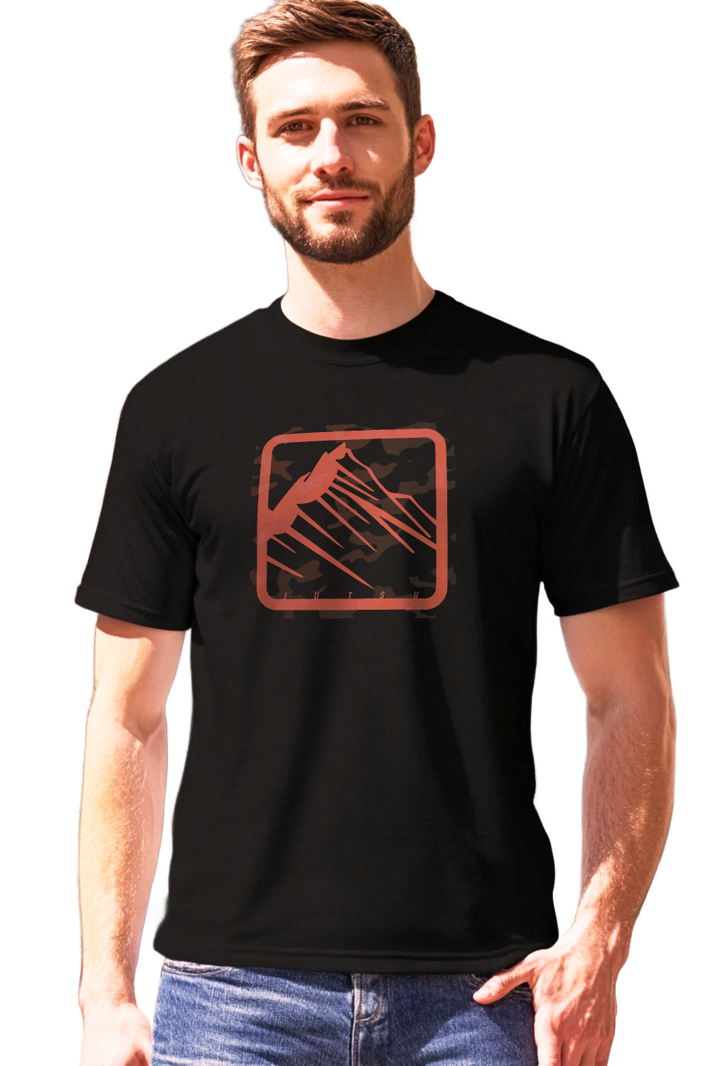 Our Jutsu logo stands bold on this black tee. Subtle camo detailing in the background adds depth without overpowering the design. Printed in an earthy tone, the graphic keeps things minimal yet striking. Made from soft, breathable materials.