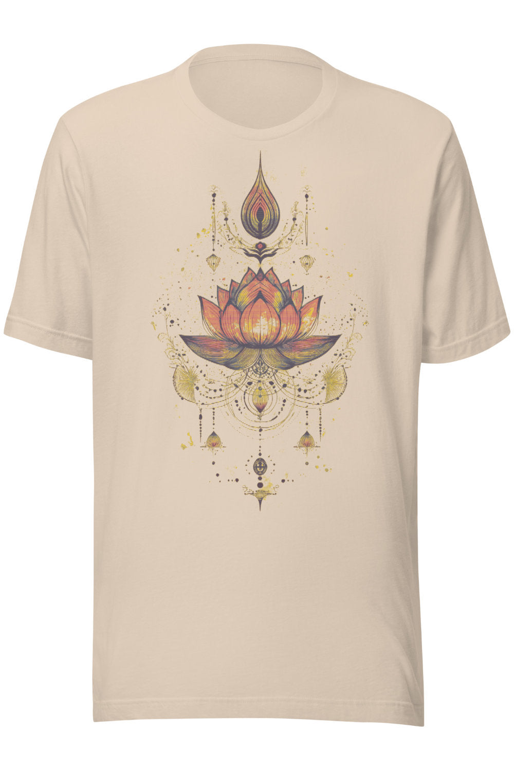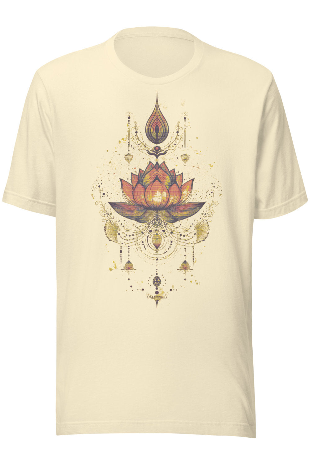 A clean, balanced design with a soft, artistic touch. Our Lotus Bloom tee blends earthy tones with delicate linework, creating a look that’s calm but eye-catching. The design flows effortlessly on light, neutral fabrics like silver and soft cream, while the breathable material keeps things comfortable. Easy to pair with anything.