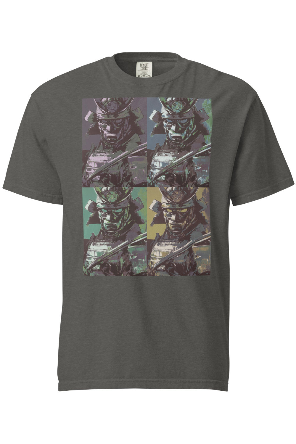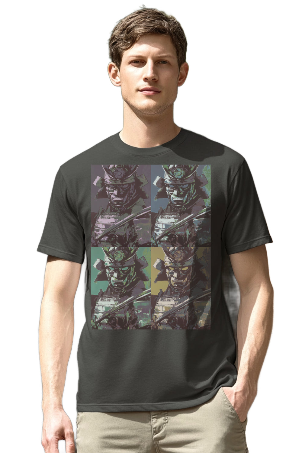 The design layers traditional warrior aesthetics with a vibrant, contemporary twist, creating a striking visual in a grid of dynamic colors. Perfect for anyone who loves blending cultural depth with modern artistic vibes, this shirt pairs effortlessly with anything, making a statement whether you're out or lounging at home.