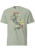 Printed on a soft heavyweight tee, this one works well in calmer colors like bay, butter, and island reef. A calm piece with a lot going on if you take a closer look.