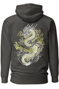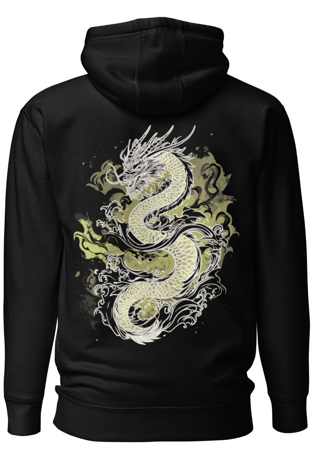 Our White Dragon hoodie brings a mythic force to streetwear with a detailed back print of a pale serpent dragon rising from stormy waves. Inked in ivory, smoke, and olive haze, this piece balances movement and stillness, perfect for cold days with sharp edges. Printed on a premium hoodie for that clean, dominant look.