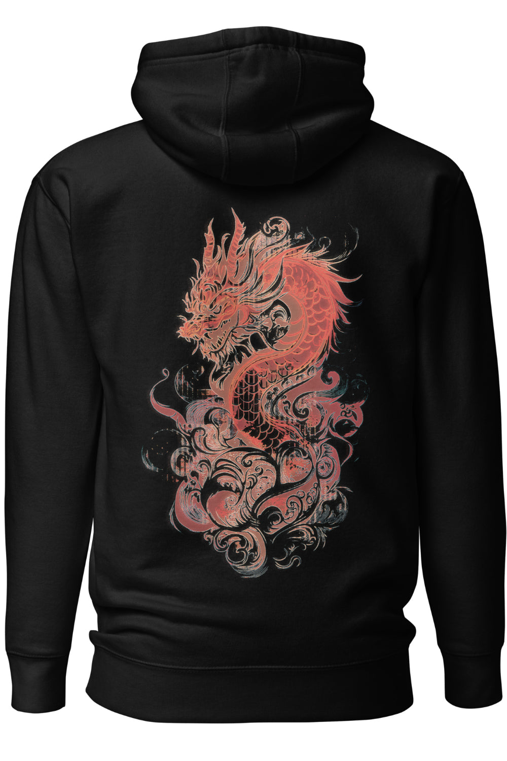 Unleash fire without saying a word with our Red Dragon hoodie boasting a fierce, coiled...